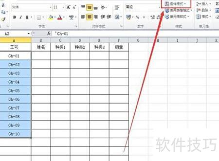 在开始选项卡中,点击条件格式按钮,所示。