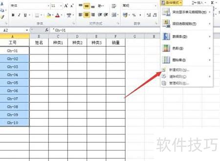 在条件格式下拉菜单中选择新建规则,所示。