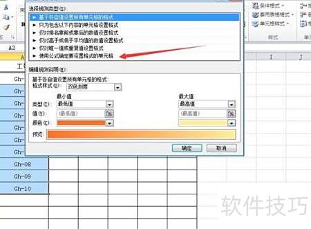 在新建格式规则窗口中,选择使用公式确定要设置格式的单元格选项,所示。
