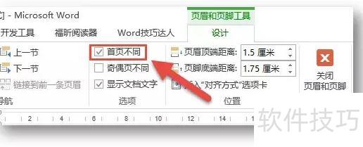 第二步:插入页码后,勾选中的选项,第一页页码隐藏,第二页页码仍显示为2。