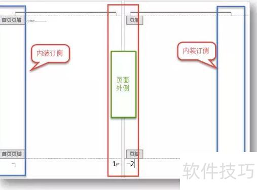 长文档双面打印并侧边装订时,为方便阅读,常需将奇偶页页码均置于远离装订边的页脚外侧位置。