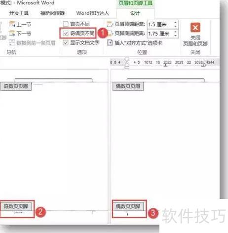 第一步:插入空白页脚,勾选奇偶页不同,奇数页会显示在此处键入提示,偶数页则不显示该提示文字,所示。