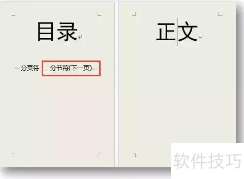 将光标移至目录页末尾,依次点击,实现目录与正文分节,随后删除新页中的空白行。