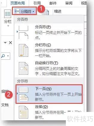 将光标移至正文页脚,使用下一节命令切换后插入页码,系统自动从第2页开始编号,所示。