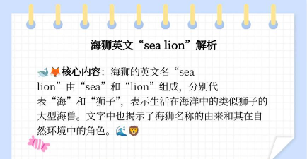 你是不是也好奇,海狮用英语怎么说,这个问题看似简单,却很有趣,它像一把钥匙,能打开一扇门,让我们走进动物世界的英文天地,学习英语,有时需要一点趣味,从身边的事物开始,比如可爱的动物,今天,我们就来聊聊这个,顺便拓展一下视野。