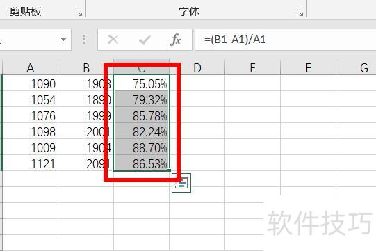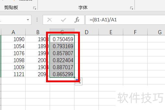 红框所示,增长率将以百分比形式保留两位小数显示。