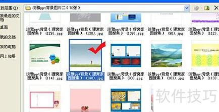 点击文件按钮,打开插入图片对话框,找到图片所在路径,选中后点击插入,即可将准备好的图片设为PPT背景。