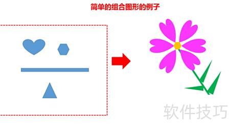 另一个简单的图形组合示例,只需通过插入→图形→拉伸、形状填充操作即可实现,效果所示。