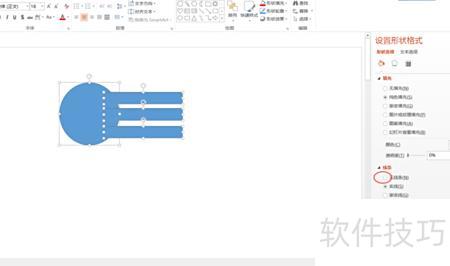 打开PPT,插入一个圆形和三个圆形长条,选中后设置形状格式,将线条设为无线条。