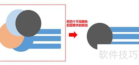 选中圆形,复制四个并叠加,各圆颜色可不同,便于对齐排列。