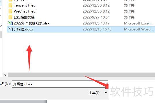 在弹出的对话框中选择所需Word文件,然后点击确定。