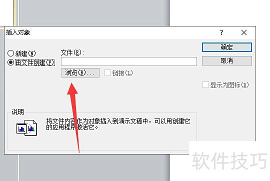 在弹出的对象对话框中,选择由文件创建选项。