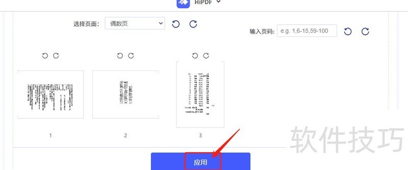 添加文件后可自由调整每页旋转角度,确认无误后点击应用即可完成操作。