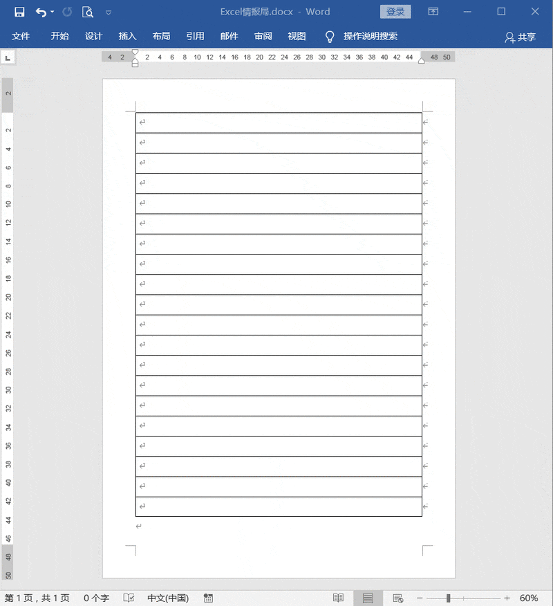 点击确定后,Word文档将插入一个1列20行的表格,行数可根据实际需要灵活调整。