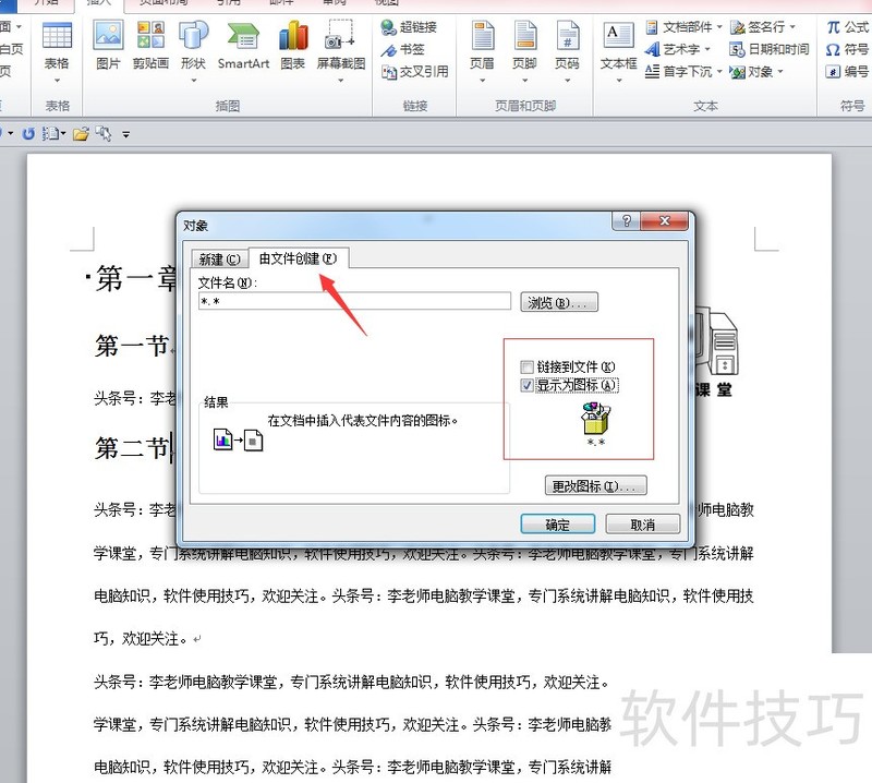 首先打开Word文档,点击插入菜单中的对象,在弹出的对话框中选择由文件创建,可勾选显示为图标,然后通过浏览按钮选取所需的视频或音频文件。插入完成后,双击生成的图标即可使用系统默认播放器进行播放,音频文件的操作方式与视频相同。