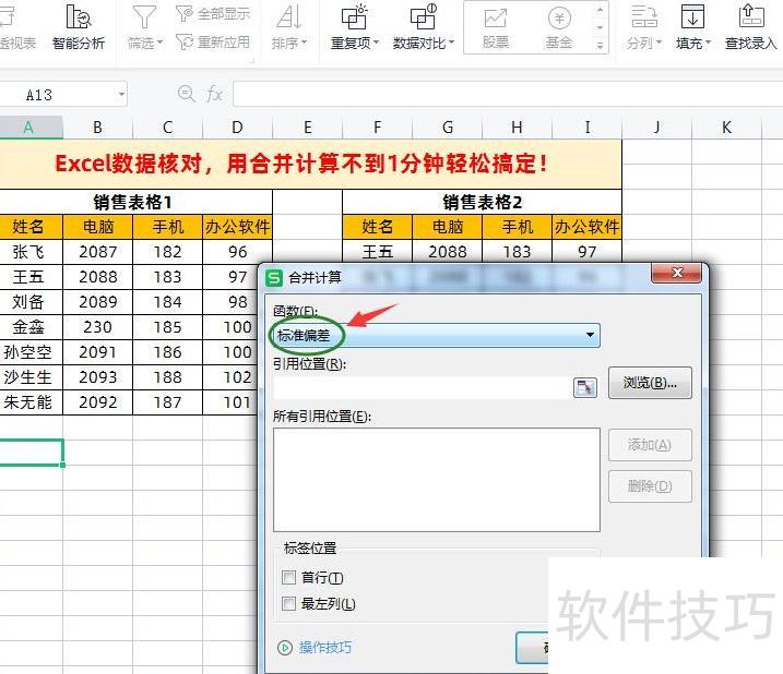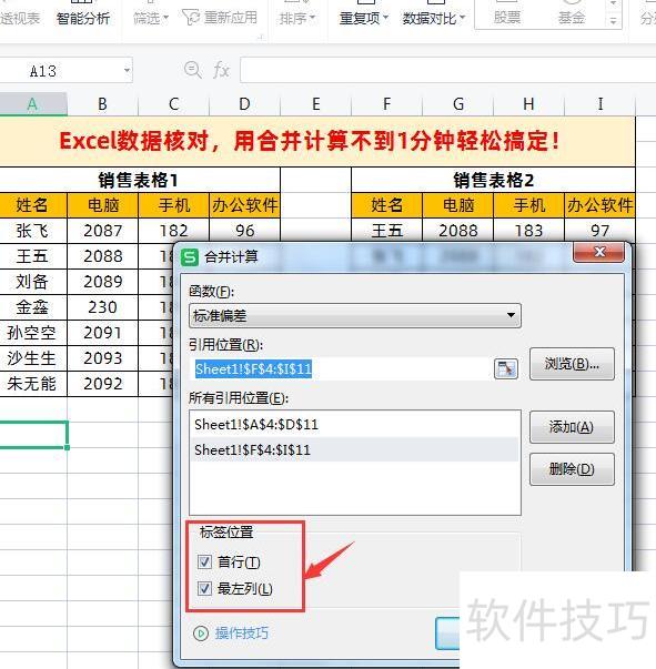 在合并计算对话框中进行以下设置操作。