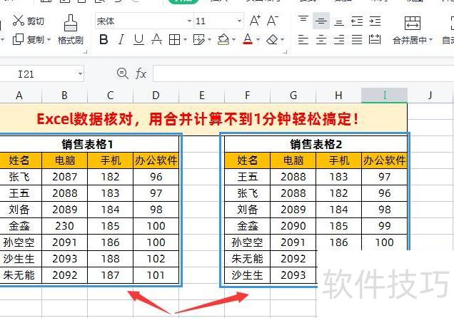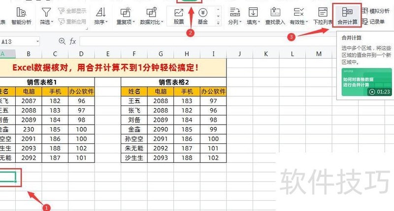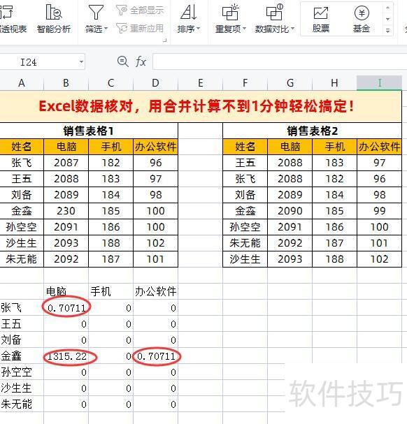 工作中常需核对表格数据,今天分享WPS中利用合并计算功能快速比对多个表格的方法。无论数据顺序是否一致,该方法均适用,操作简单,掌握技巧后不到一分钟即可完成核对,高效便捷,特别适合处理多表数据对比任务,大幅提升工作效率。