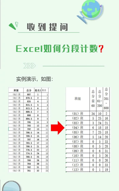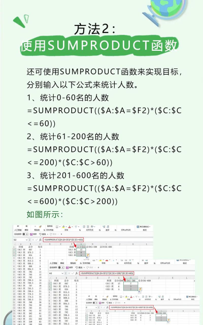 统计数值在指定区间内的出现次数,并返回一个垂直数组。例如,利用 FREQUENCY 函数可统计成绩范围内各分数段的学生人数。由于该函数返回数组,需以数组公式输入。