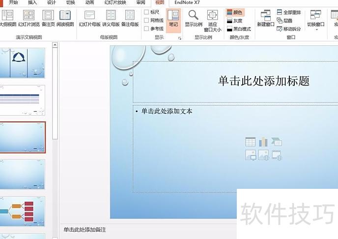 点击视图选项后,进入幻灯片母版界面,选中并打开其中的幻灯片母版即可。