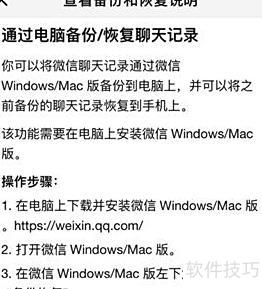 点击后页面将显示备份和恢复说明,需使用电脑版,方可将聊天记录备份至电脑。