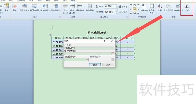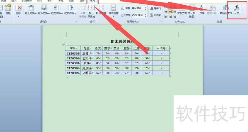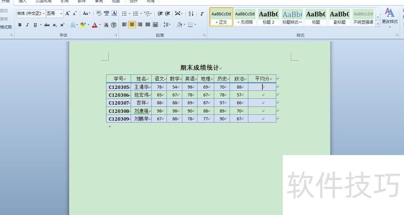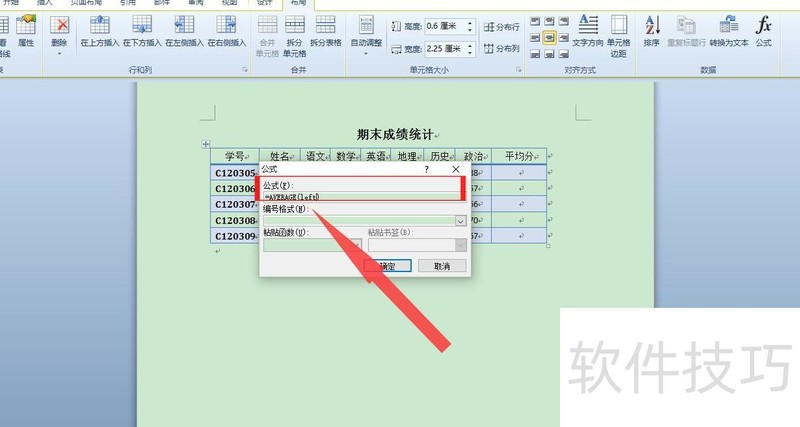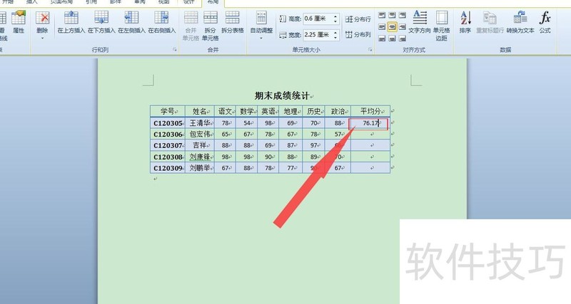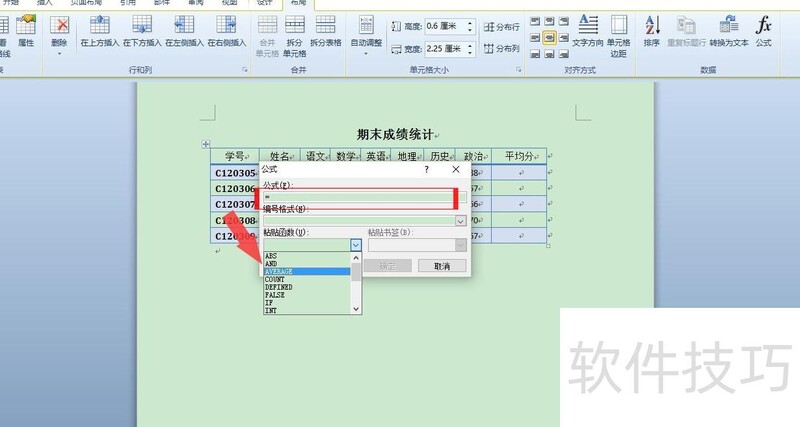 如何在word表格中算平均分