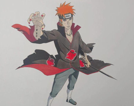 画天道佩恩需要耐心,多观察原图,抓住冷漠的神态,和晓袍的飘逸,一步步来,你也能画出属于自己的,那个掌控神罗天征的佩恩,快拿起笔试试吧。