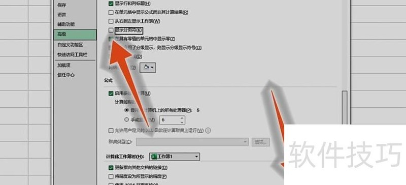 在高级设置中取消勾选显示分页符,点击确定,即可消除表格页面边缘的虚线。
