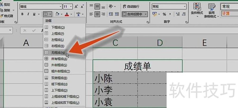 3、点击无框线