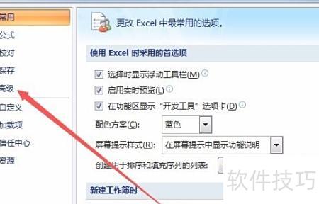 此时可打开Excel选项窗口,点击左侧边栏中的高级菜单项。