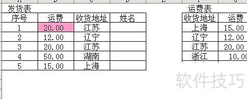 运费表可置于同一表格任意位置,也可分设于不同工作表中。