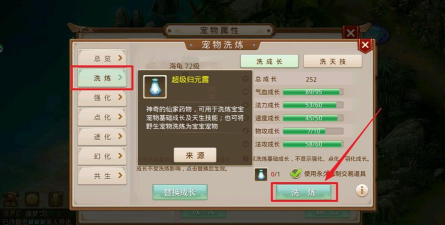 3、洗点操作技巧,耐心与策略结合洗点操作,本身并不复杂,打开宠物界面,选择洗点,放入归元露,然后确认,就可以了,但是,这里面,有很多技巧。