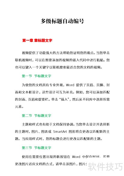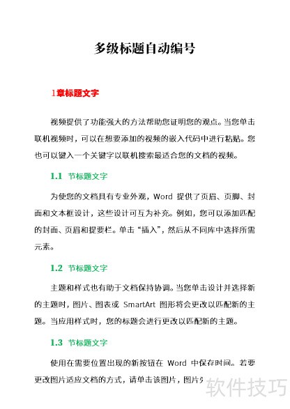 在编辑Word文档,特别是较长文档时,设置多级标题是常见操作,若能为各级标题添加自动编号,则更加高效便捷。本文结合个人使用经验与习惯,分享多级标题自动编号的设置方法,供读者参考学习。最终实现的自动编号多级列表效果所示。