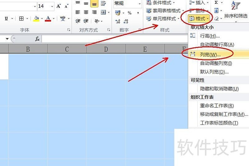 同样方法,依次点击格式菜单中的列宽选项。