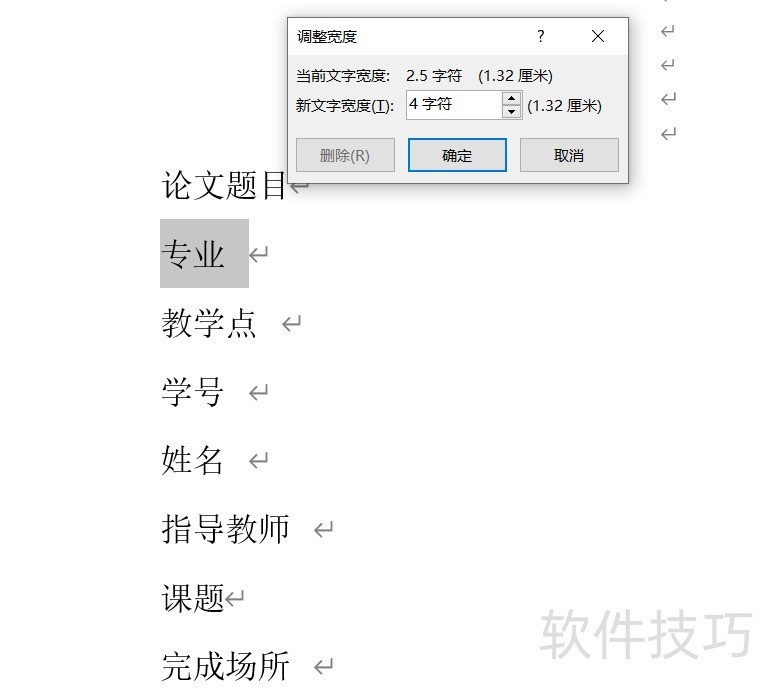 可见文字最多一行含四个字,将宽度设为四个字符后点击确定,即可实现对齐。