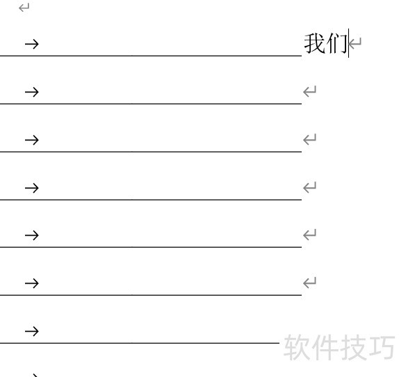 按需设定下划线长度,每行文字后依次按Tab键即可完成。