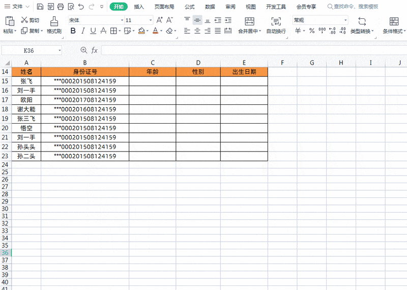 首先选中目标单元格,依次点击→→,选择、或,再点击对应身份证号码的单元格,确认后向下复制公式即可完成操作,具体效果所示。