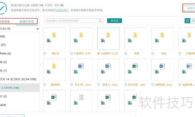 下载并安装数据恢复专家软件,进入后在文件类型中选择文档,随后点击扫描按钮。扫描完成后,系统会列出所有可找回的文件。在列表中查找误删的Word文档,其中橙色标记的为已删除但可完整恢复的文件。选中目标文档,点击右下角的恢复即可完成操作。