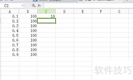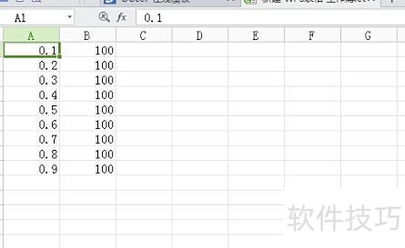 在电子表格中输入9个数据,依次为0.1到0.9,步长0.1,可自行增减数量。这些数据所在单元格的名称框分别标记为A1至A9,字母大小写均可识别。
