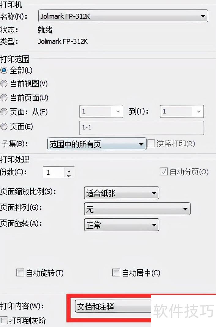 注意:部分PDF软件的打印设置中,文档和注释显示为文档和图章,此时选择文档和图章,电子发票打印后仍可完整呈现印章。