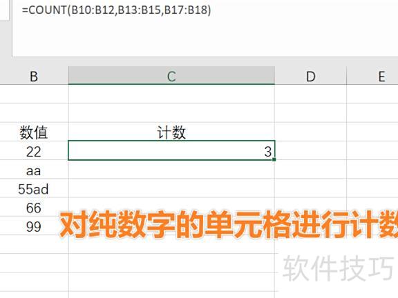 count函数用于统计参数列表中包含纯数字的单元格数量。