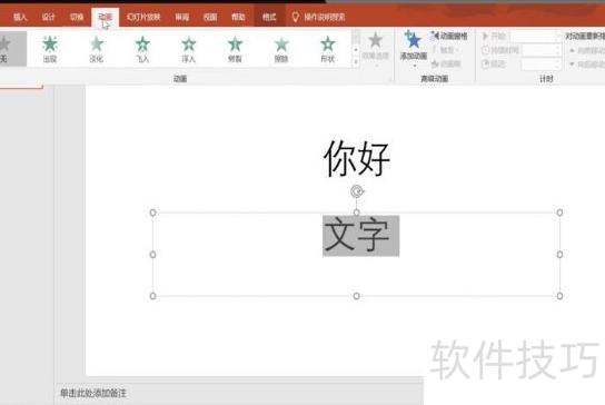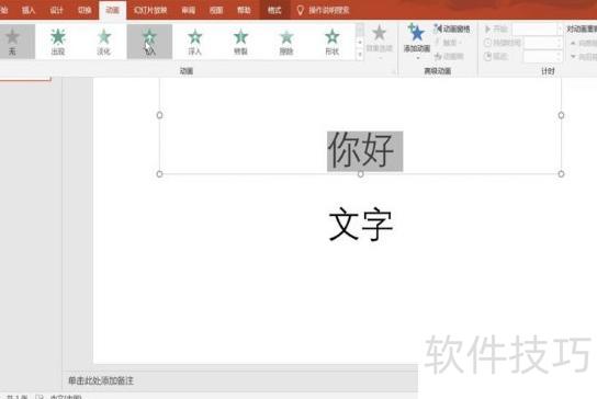 选中文字后,点击动画选项。