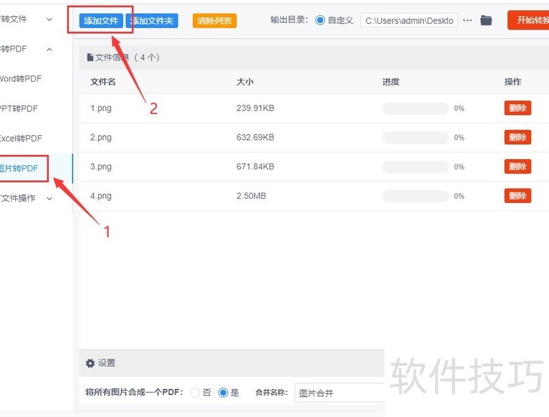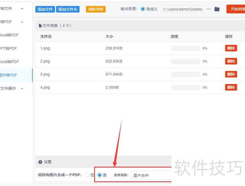 第三步:今日需将多张图片合并为一个PDF文件,因此在下方是否合并所有图片为一个PDF选项中选择是,即可完成合并操作。