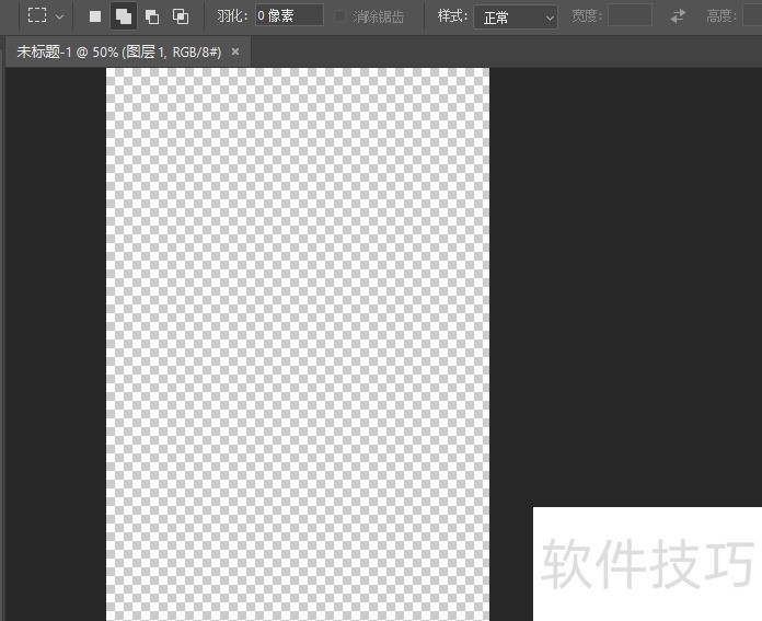 第一步:启动已安装的PS软件,新建一个透明背景的空白图层,尺寸可根据个人需求自行设定。