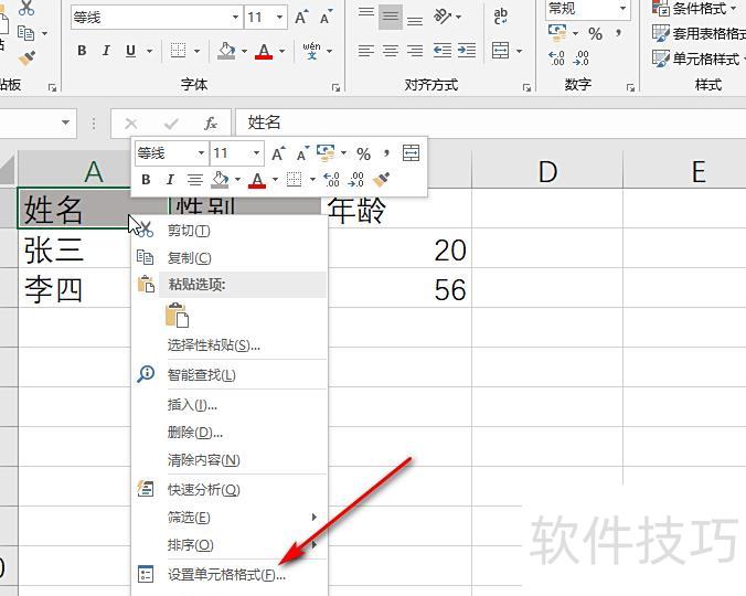 在A1单元格上右键,从菜单中选择设置单元格格式选项。