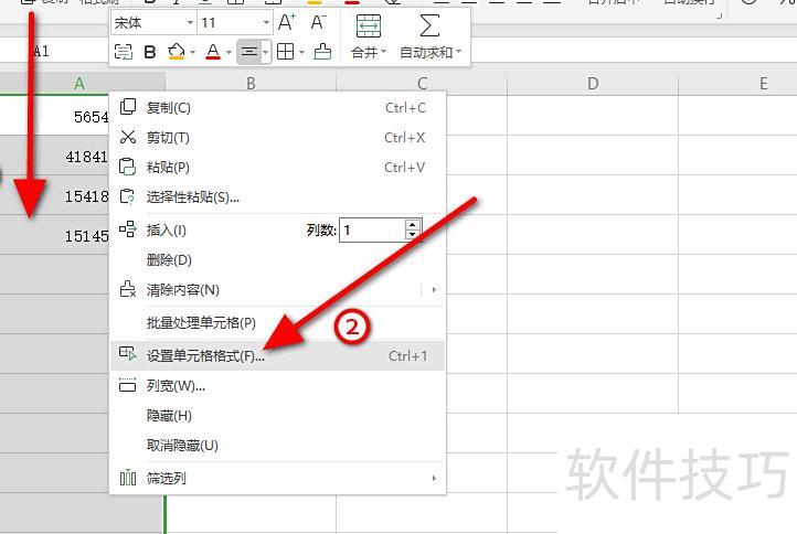 选中目标单元格或区域,右键单击,从菜单中选择设置单元格格式选项。