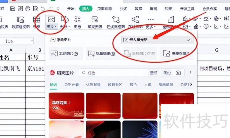 插入图片时,需嵌入单元格中。