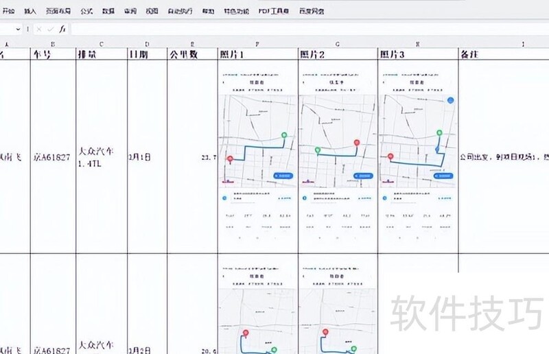 先用WPS整理插图,将所有里程图片编辑进单元格。