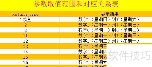 return_type为可选参数,在Excel函数中可省略,其值由开发人员预定义,用户可根据实际需求从下表选择相应取值,表中列出了各参数值及其对应关系。