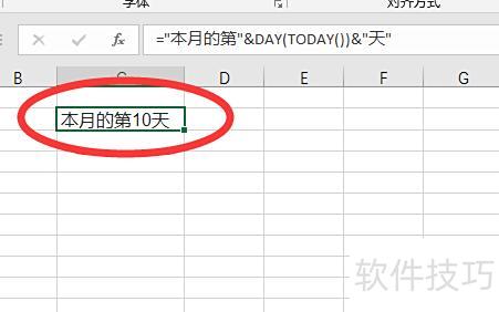 在Excel的空白单元格中输入公式:=本月的第&DAY(TODAY())&天,即可显示当前日期为本月第几天。