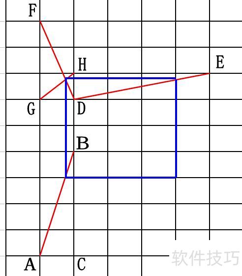 线段AB与DE为四格对角线长度,DF为三格对角线长度,GH为一格对角线长度。